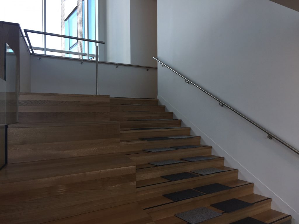 Ce chantier comprend plusieurs réalisations en métallerie et serrurerie. À l’intérieur, une main courante en inox a été posée sur un escalier à marches bois. Des garde-corps vitrés ont été installés sur trémie ainsi qu’en encastrement en pied sur escalier bois, avec un capot en tôle thermolaquée pour l’habillage des fixations. À l’extérieur, un escalier métallique galvanisé à 4 volées a été réalisé, comprenant les ossatures de paliers avec platelages en tôle à larmes 4/6 mm, des marches en tôle à larmes pliée galvanisée et des garde-corps à barreaudage. L’ensemble est complété par un habillage galvanisé de la cage d’escalier, constitué d’une ossature support secondaire et de ventelles en tôles pliées.
