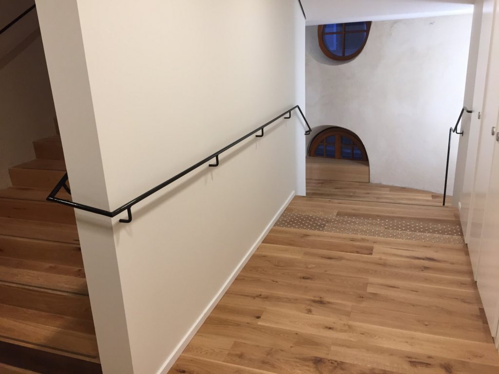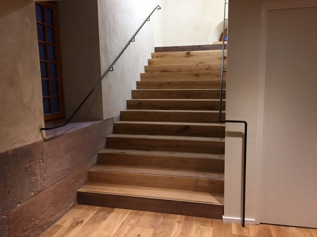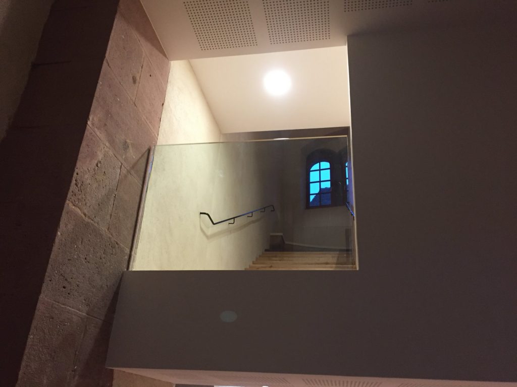 Ce chantier a consisté en la réalisation d’un garde-corps vitré ainsi que d’une main courante murale thermolaquée pour la Bibliothèque humaniste à Sélestat.